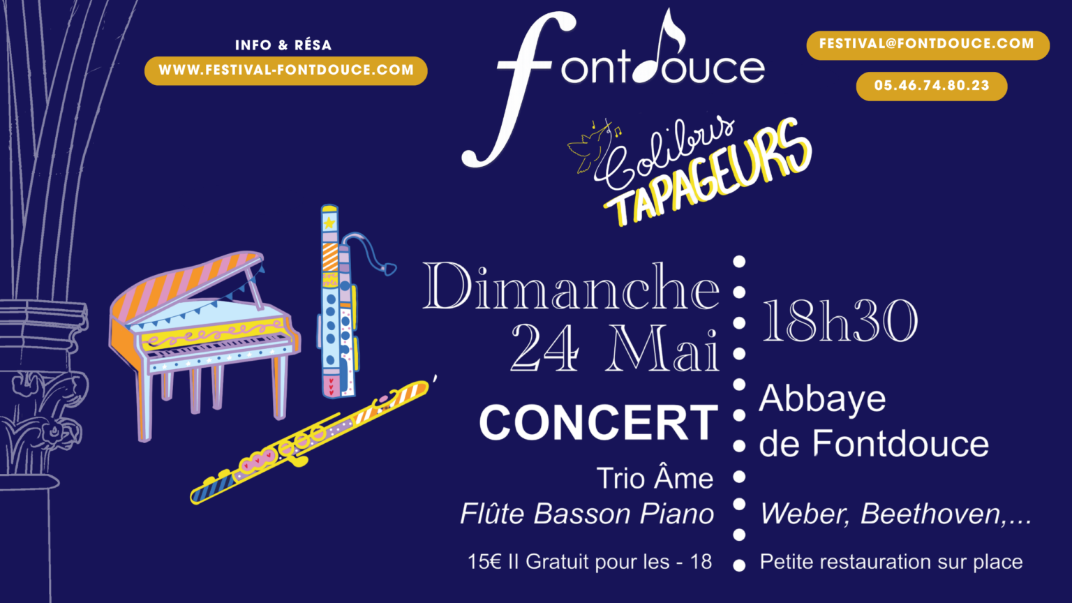 Le 24 mai à 18h30, l’Abbaye de Fontdouce accueille Les Colibris Tapageurs avec le trio ÂME :